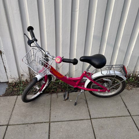 Frog børnecykel med 16" hjul i blå farve. Cyklen har lav indstigning og er egnet til mindre børn, typisk til de første ture på cykel uden støttehjul. Udstyret med kædeskærm og skærme, som beskytter mod snavs. Velegnet til hverdagskørsel, ture til skole eller fritidsaktiviteter for et barn, der passer til 16" hjulstørrelse. Passer til et barn på 5-6-7 år.