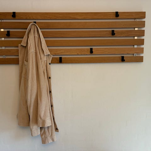 Sælger 2 stk. knagerækker, 40 cm i farven Eg Vintage, med 7 stk. aluminium kroge fra Gedebjerg design .