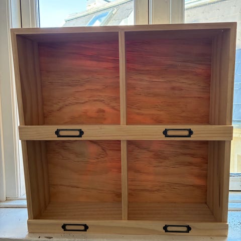 Opbevaringskasser fra Søstrene Grene, passer desværre ikke ind i farverne efter vi er flyttet sammen.