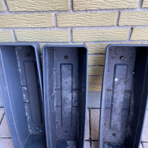 Altankasser fra ikea, der hænges i 2 beslag til væggen. Den ene kasse mangler et beslag.