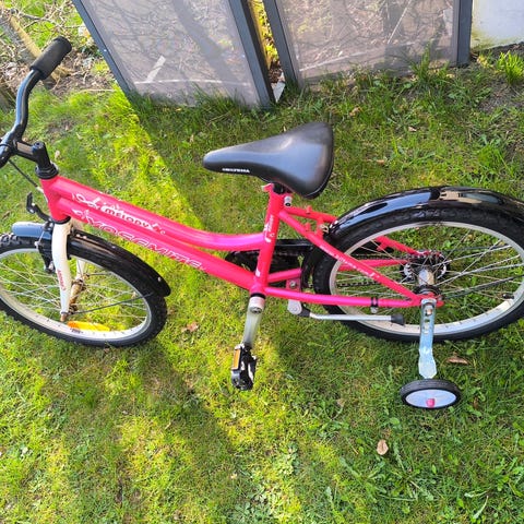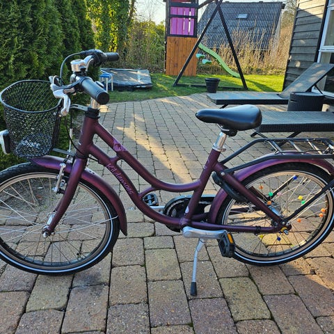 20 tommers Kildemoes Bikerz pigecykel i lilla farve. Cyklen har lav indstigning, kurv foran, bagagebærer, støtteben og kædeskærm. Egnet til børn, der passer en cykel med 20" hjulstørrelse.