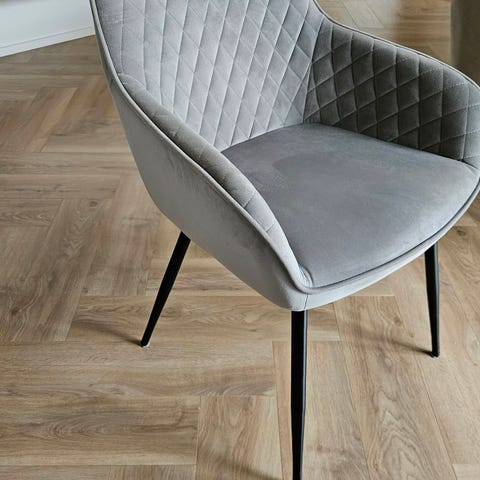 6 x Claudia spisebordsstole i velour – grå med sort metalben