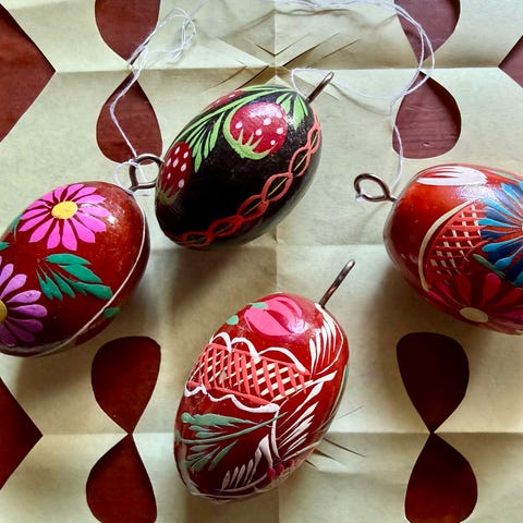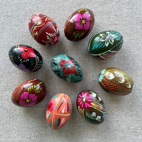Håndmalede smukke gamle træpåskeæg (Pysanka)