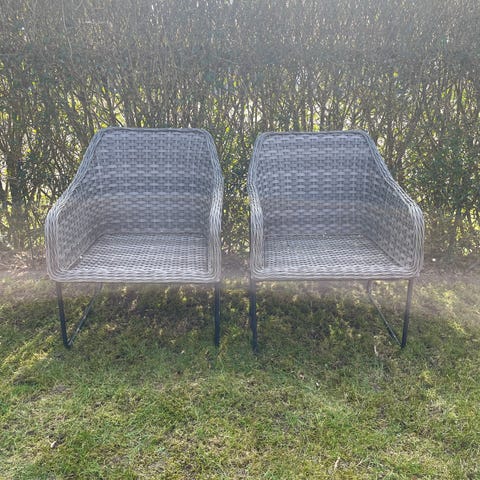 Spisestol i flettet materiale i grå nuance med metalstel. Pris pr stk samlet 1500 kr...