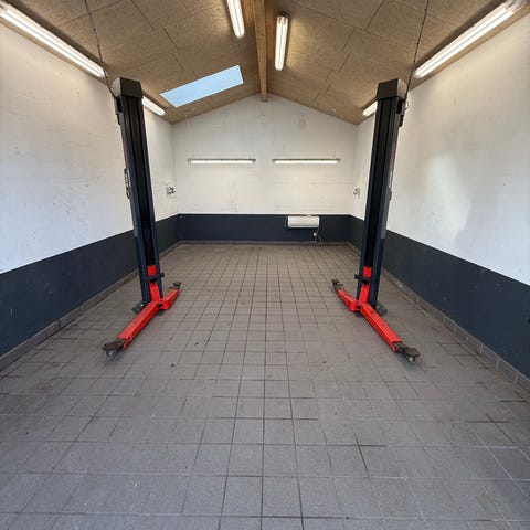 Fuldt funktionsdygtig Stenhøj Mascot autolift, 2-søjlet model egnet til løft af personbiler og lette varebiler. Løftekapacitet 2500 kg. Fabrikat: Stenhøj Autolift A/S, type 000611, årgang 1998. Løfteren er konstrueret som en elektrisk-hydraulisk 2-søjlet lift med justerbare arme til understøtning af køretøjets løftepunkter.