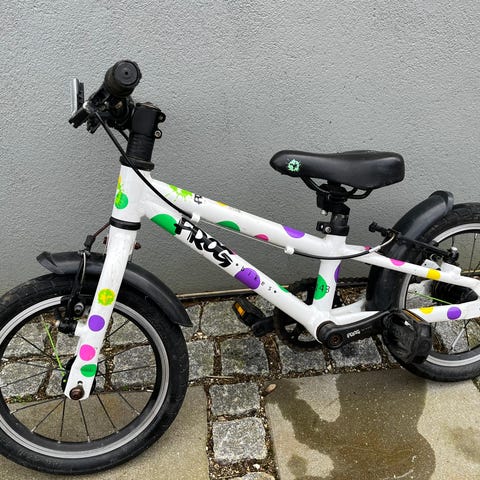 Frog løbecykel med 14" hjul. Velegnet til mindre børn (3-5 år), der skal øve balance og styreteknik før almindelig cykel.