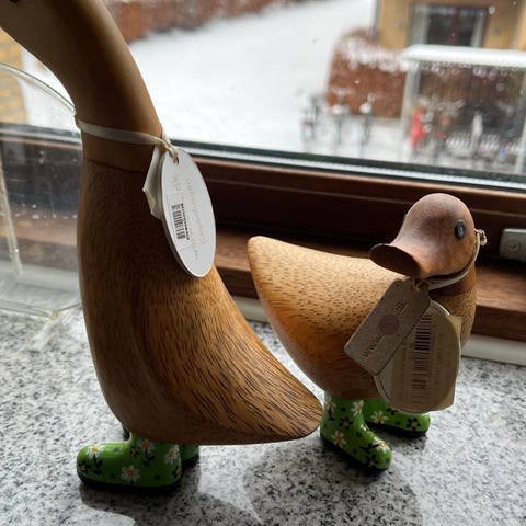 Forskellige træ ænder - de 4 små er ler lignende materiale (20 kr.)