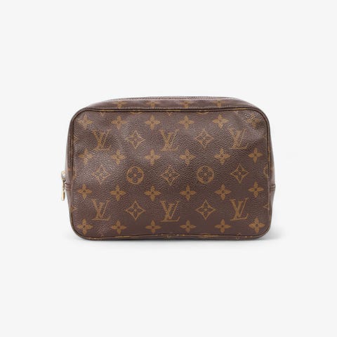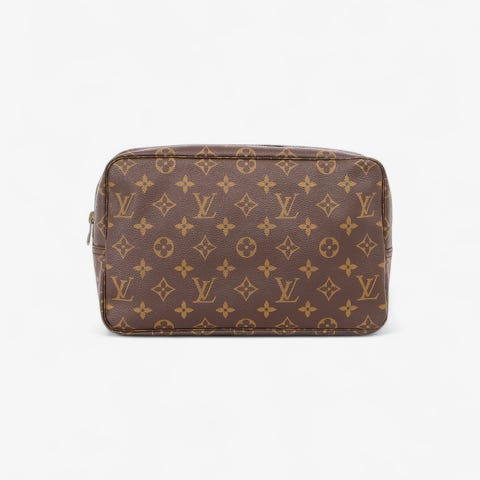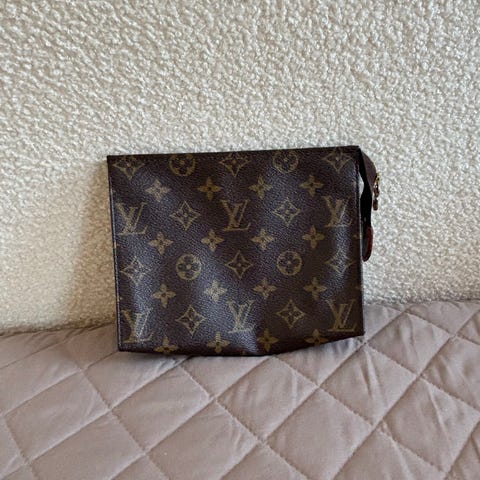 Louis Vuitton Toilette 23 i ikonisk Monogram Canvas. En tidløs og super anvendelig LV-classic, der fungerer perfekt som toilettaske i weekender og på rejser, men også som clutch/organizer i en større taske. Den rene, minimalistiske form gør den let at style, og monogram-canvas er kendt for sin slidstyrke og for at holde sig flot over tid.