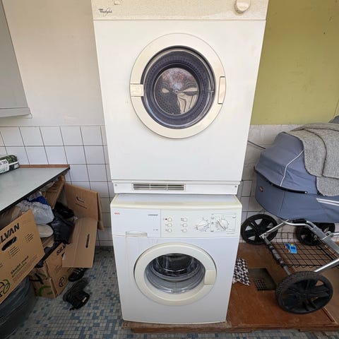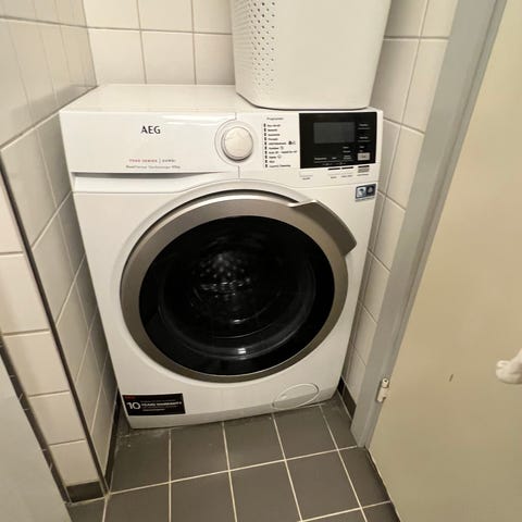 Ikke den nyeste og ikke den smukkeste, men den har altid været pålidelig og fungerer stadig godt. Vi sælger den, fordi vi nu har plads til en separat vaskemaskine og tørretumbler.