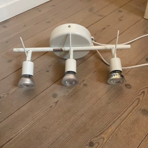 Loftlampe fra IKEA med pærer, der kan indstilles i forskellige retninger.