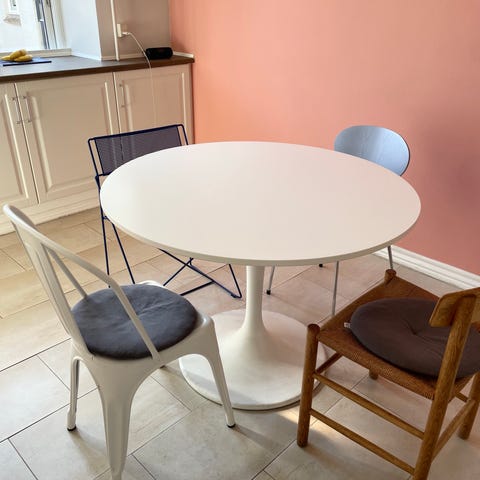 Hvidt rundt bord fra IKEA “Docksta”