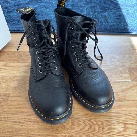 Klassiske sorte læderstøvler med snørelukning og lynlås.