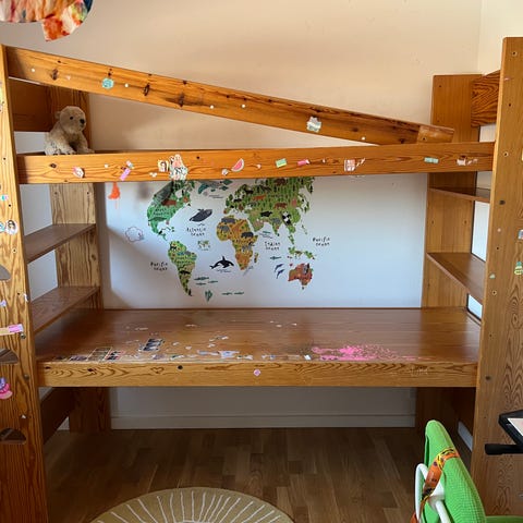 fejler intet udover barnebarnet har prøvet selv at male vægen bag sengen se billede 6+7+8