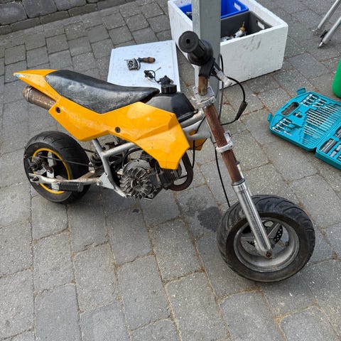 5 Pocketbikes der KUN sælges samlet ,FAST pris ,ingen bytte prisen er for alle 5 ,den mindste ved jeg kan starte ,de andre ved jeg ikke nogen skal have luft i ,men tror der bare skal benzin på for at starte dem op