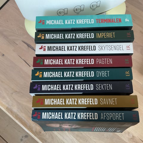 Samling af krimibøger af Michael Katz Krefeld. Flere titler, "Terminalen", "Skytsengel", "Pagten" og 2 x "Dybet".