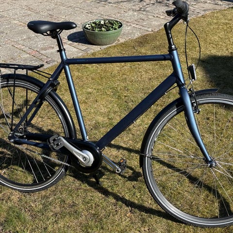 Meyer Herre citybike københavn i sort med klassisk stel og oprejst kørestilling. Køreklar 3 gær perfekt stand. Automatisk lygte .Stel nr.WVDE403510S.Passe til ca.180-187 cm høj.Cyklen har helt ny baghjul ,fastmonteret bagagebærer bagtil og stort frontlad/forbærer til transport af tasker eller mindre varer. Udstyret med kædeskærm, skærme for og bag samt komfortsadel. Velegnet til daglig kørsel i byen og pendling på korte og mellemlange ture.