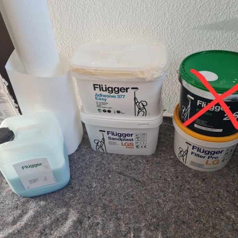 3 X Flügger Filler Pro LSR spartelmasse. Klar til påføring med rulle eller spartel. Nypris 350kr pr spand. Tag alle 3 for 500kr Har spartel, gulv lim og lak tilbage fra hus projekt- tag det hele for 1000kr