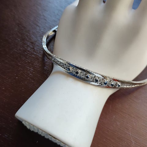 Smuk armbånd i Geneve stil med flere strenge i guldlook. Ingen stempler.