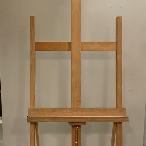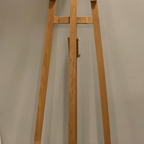 Gulvstaffeli på hjul fra Talens. Hylden lærredet står på er 60cm bred. Lærredet kan max være 162cm højt. Der er en hylde til ekstra malergrej. Staffeliet kan foldes sammen.