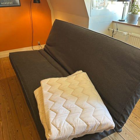 Er købt som sovesofa med gavl. Gavlen er desværre smidt ud for år tilbage. Mangler et par knapper men ellers i fin stand. 140x200