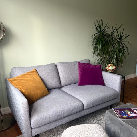 2 år gammel sofa fra Ilva. Sofaen er i rigtig fin stand, med ingen tydelig brugstegn andet end lidt fnuller (se sidste billede).