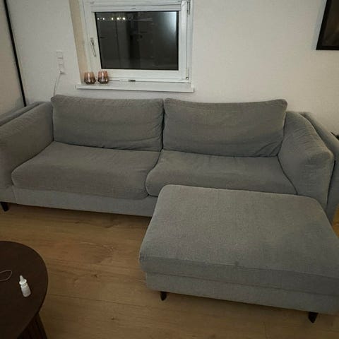 2 sofaer slidte, men kan bruges med de medfølgende tæpper.
