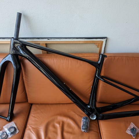 Carbon ramme med helt ny bagdæmper. Inklusiv headset, aksel, ekstra geardrop og maling.