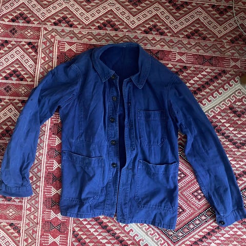 Vintage jakke købt i Paris, i workwear stil med tre lommer. I vasket sort bomuld.