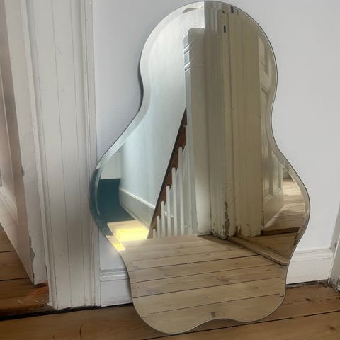Hjemmelavet fuld figurs spejl i malet mdf træ og et stort stykke spejl