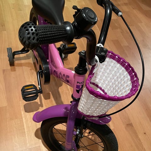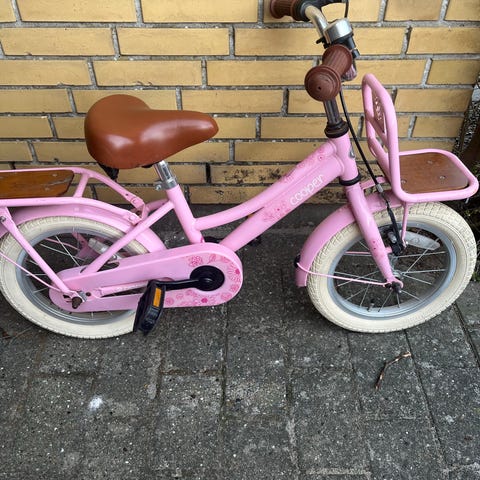 Olaf børnecykel med 14" hjul. Cyklen er i blå og orange farver og har skærme foran og bagpå. Udstyret med almindelige pedaler, styr med håndtag og ringeklokke samt sadel i sort og hvid. Egnet som mindre børnecykel til hverdagscykling og korte ture.
