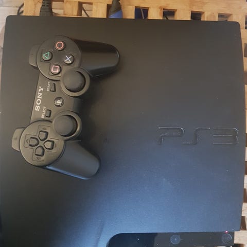 Playstation 3 Super Slim PS3 Super Slim med en controller og strømkabel. Konsollen er testet og virker som den skal.