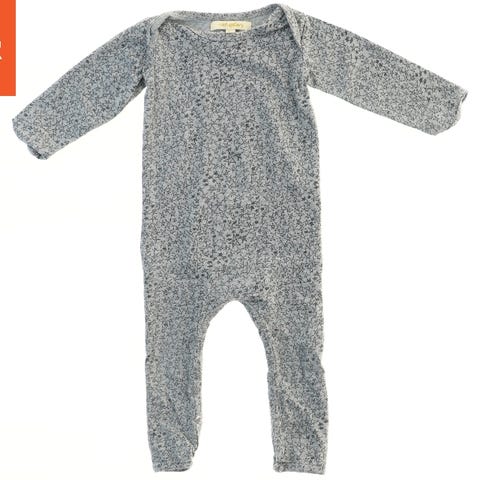 Heldragt med lange ærmer og ben i grå farve. Dragten har et stjernemønster over hele stoffet. Den har indbygningsknapper ved benene for nem påklædning. Velegnet til småbørn.