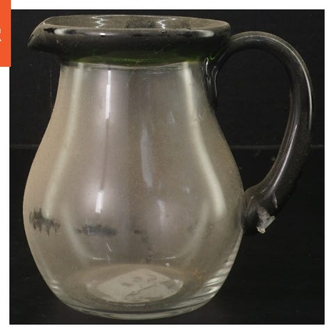 En klar glaskande/flødekande med et robust håndtag. Kanden har en skænketud til præcis hældning og er sat på en firkantet base. Den måler 13x5x11,5 cm.