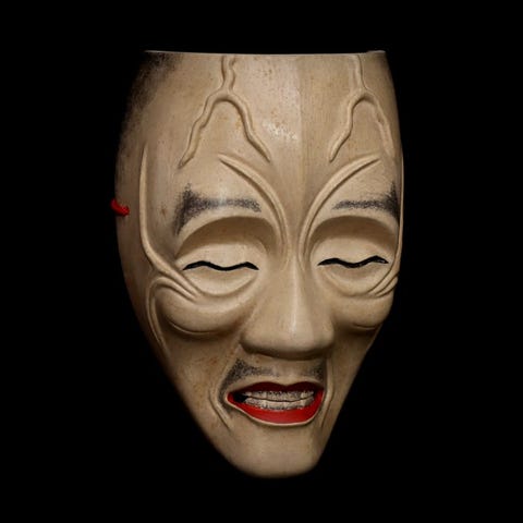 Semimaru: en maske specielt designet til hovedkarakteren i Noh-fortællingen “Semimaru”. Den fjerde barn af kejser Engi, prins Semimaru, blev født blind.