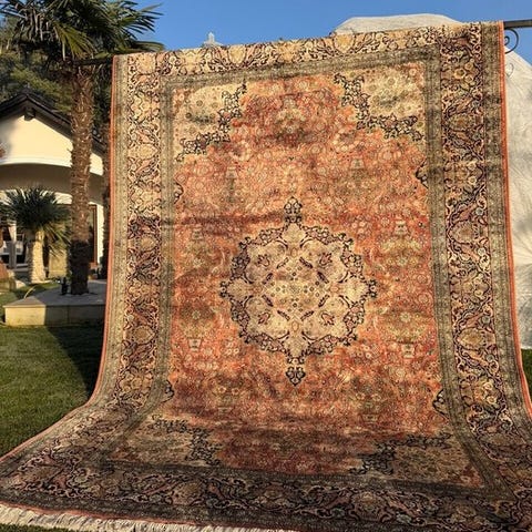 Origin : Uniqe hand knotted Ghoum rug with beautiful colors.
