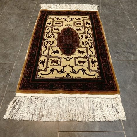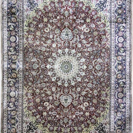 Det Materiale: Ren luksus Disse tæpper er lavet af ren naturlig silke. Anvendelsen af silke både til tæppets overflade og ofte til kæden (grundrammen) muliggør en ekstremt høj knudetæthed. Resultatet er en utrolig fin, næsten billedlig tegning af mønstrene og en overflade, der føles uforligneligt blød og smidig.