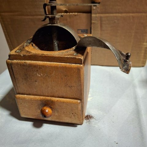 Macinacaffè manuale prodotto dalla storica manifattura francese Peugeot Frères a metà del XX secolo.