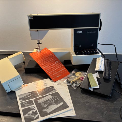 En velfungerende Pfaff symaskine og fejlfrit. Den er Perfekt til både begyndere og øvede – god til almindelig syning, reparationer og hobbyprojekter.