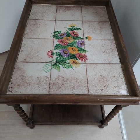 Bakkebord med mosaik , hollænder kakler og løs Underbakke. Kan bruges til skak bord. Ø 45. H 53.
