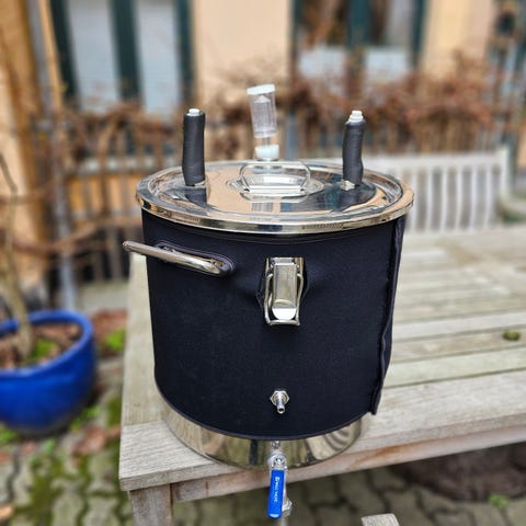 Samlesæt brygudstyr til ølbrygning med gryde, gærspande og kobberspiral