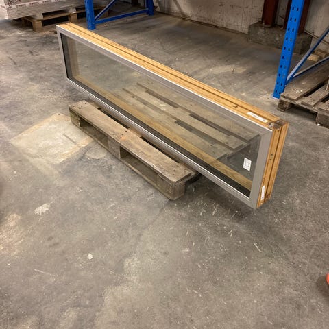Langsmalt glasparti vindue i kombination af træ og aluminium. Rammen er udført i træ på indersiden og aluminium på ydersiden, og feltet består af et langt, rektangulært glas. Velegnet som fast vinduesparti i f.eks. facade, udestue eller som sideparti ved dør, hvor der ønskes ekstra lysindfald.