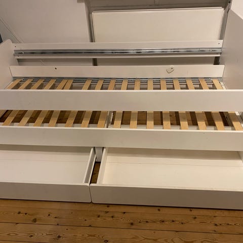 Seng med skuffer og udtræk