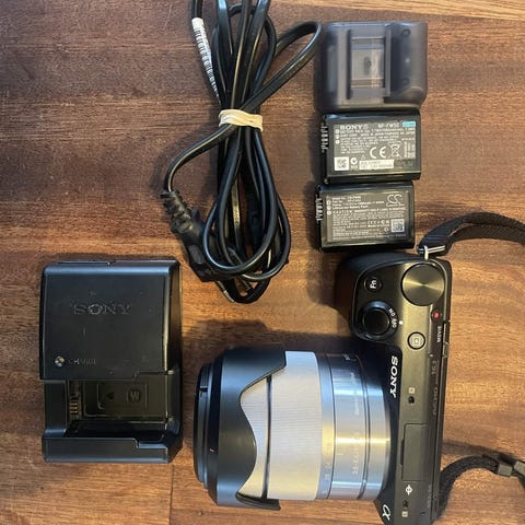 Sony NEX-5N spejlløst digitalkamera i god og fuldt fungerende stand, testet og klar til brug. Leveres med Sony 18–55mm f/3.5–5.6 objektiv.