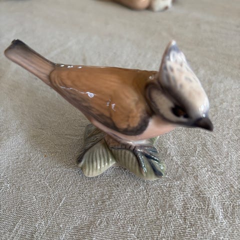 Fugl fra B&G - Danmark ("Optimisten"): Er i virkelig god stand, uden afslag. Har den fineste glasur i meget smukke blå, hvid/beige og lysebrune nuancer. Mål: ca 12 x 6 cm.