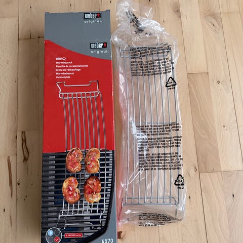 Weber Q Warming Rack varmehylde til grill. Ekstra rist, der monteres over den primære grillrist på Weber Q grillmodeller for at holde mad varm eller varme brød og tilbehør. Designet til brug i gasgrillserien Weber Q med passende mål som angivet på emballagen. Fremstillet i metal med trådkonstruktion, der giver stabil understøttelse af maden under indirekte varme.
