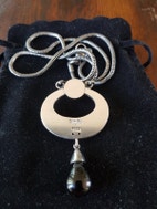 Halskæde, sølv, Stryhn, Halskæde i 925s vedhæng B 3,5cm L ialt 6,8cm perle lys grå 10mm Onyx dråbe 2/1,2mm Onyx kæde 2,1mm L 45cm