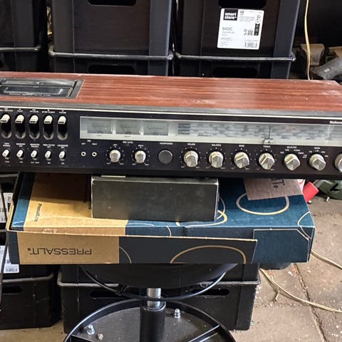 Panasonic stereoanlæg med indbygget kassetteafspiller og radiomodtager. Enheden har flere betjeningsknapper og drejeknapper på fronten til justering af lyd og kanaler. Kabinettet har overflade med trælook. Velegnet som lydanlæg i stue eller hobbyrum, hvor der ønskes kombineret radio og kassetteafspilning.