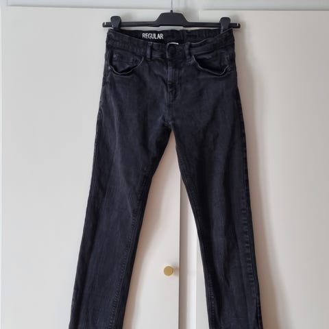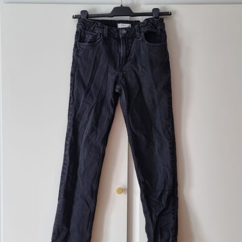 De har et vasket sort look og lige ben. De har lidt stretch og er - ifølge barnet - behagelige at have på. De kan indstilles i taljen.