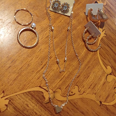 Stål smykke sæt, armbånd 19 cm og længde på kæde er ca 47 cm ( diam 15 cm)