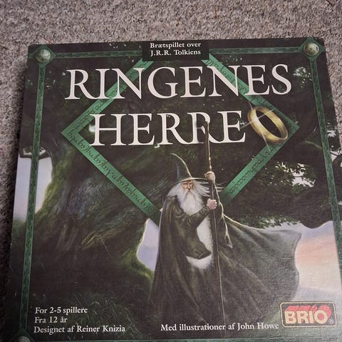 Alga Ringenes Herre familiespil brætspil. Brætspil baseret på J.R.R. Tolkiens univers, hvor spillerne følger fællesskabets rejse. Spillet indeholder spilleplade, kort, terning, brikker og markører. Egnet som familiespil fra 8 år og opefter med mulighed for flere spillere. Illustreret spilleplade og komponenter med motiver fra Ringenes Herre.
